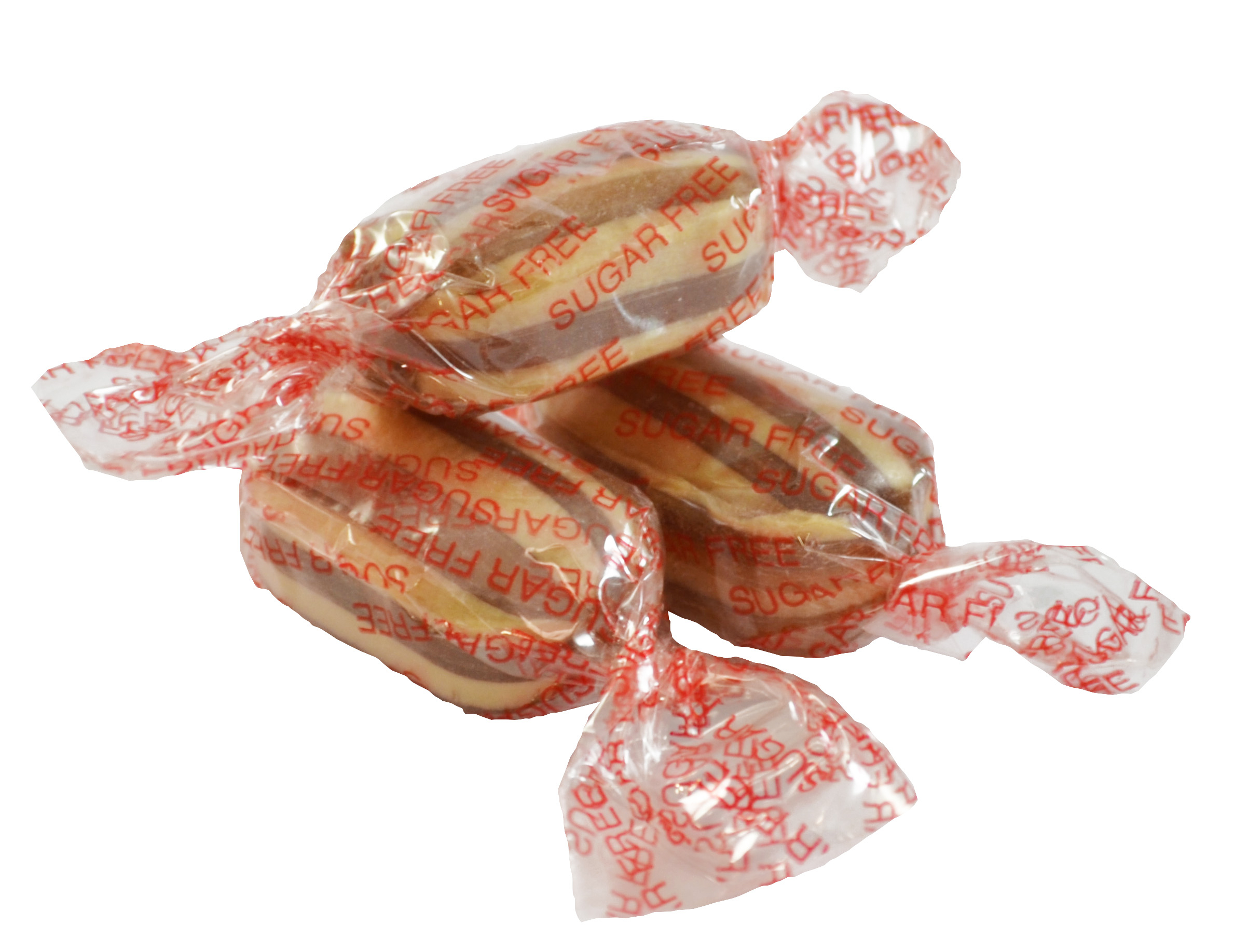 Sugar free mint flavoured hard boiled sweets with a chewy toffee centre